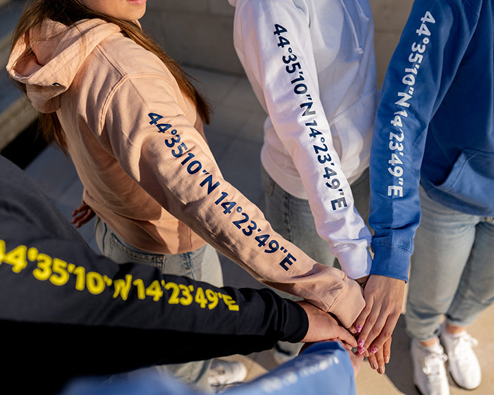 Coordinates on your sleeve, Lošinj on your mind. Wear the island—hood up, heart full.